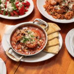 hand-layered eggplant, zucchini, potato, beef and pork, topped with creamy béchamel sauce. served with greek salad, fresh grilled pita and tzatziki